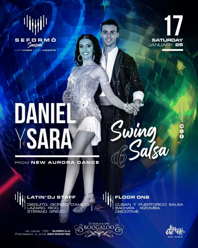 Questo Sabato siamo felici di presentarvi Daniel Contaldo e Sara Notaro, ballerini di grande talento, protagonisti del Mondo delle Danze Latino Americane e Caraibiche.